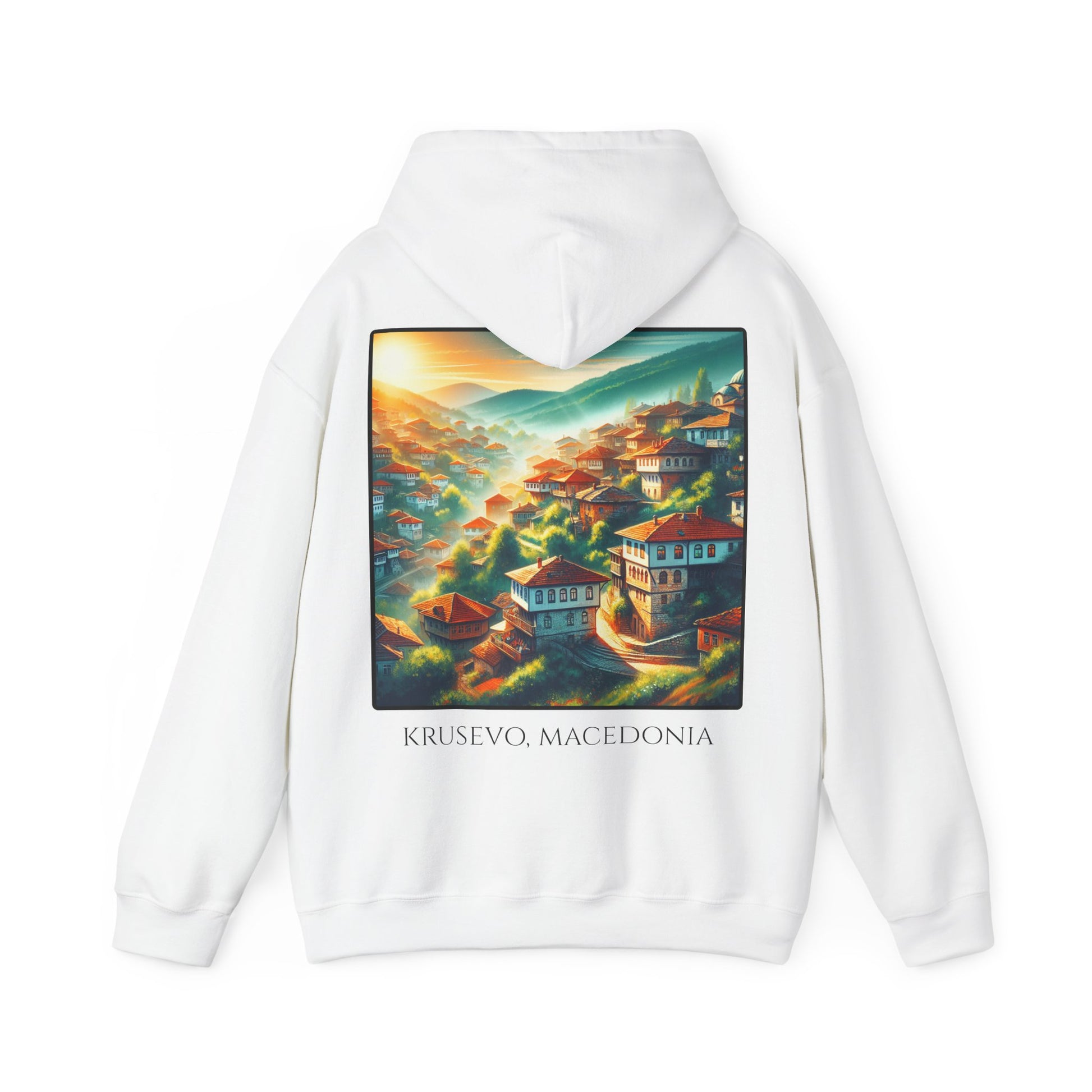 Crafted from ultrasoft and durable fabrics, this hoodie features a breathtaking sun-drenched illustration of Kruševo — one of Macedonia's highest and most picturesque mountain towns.