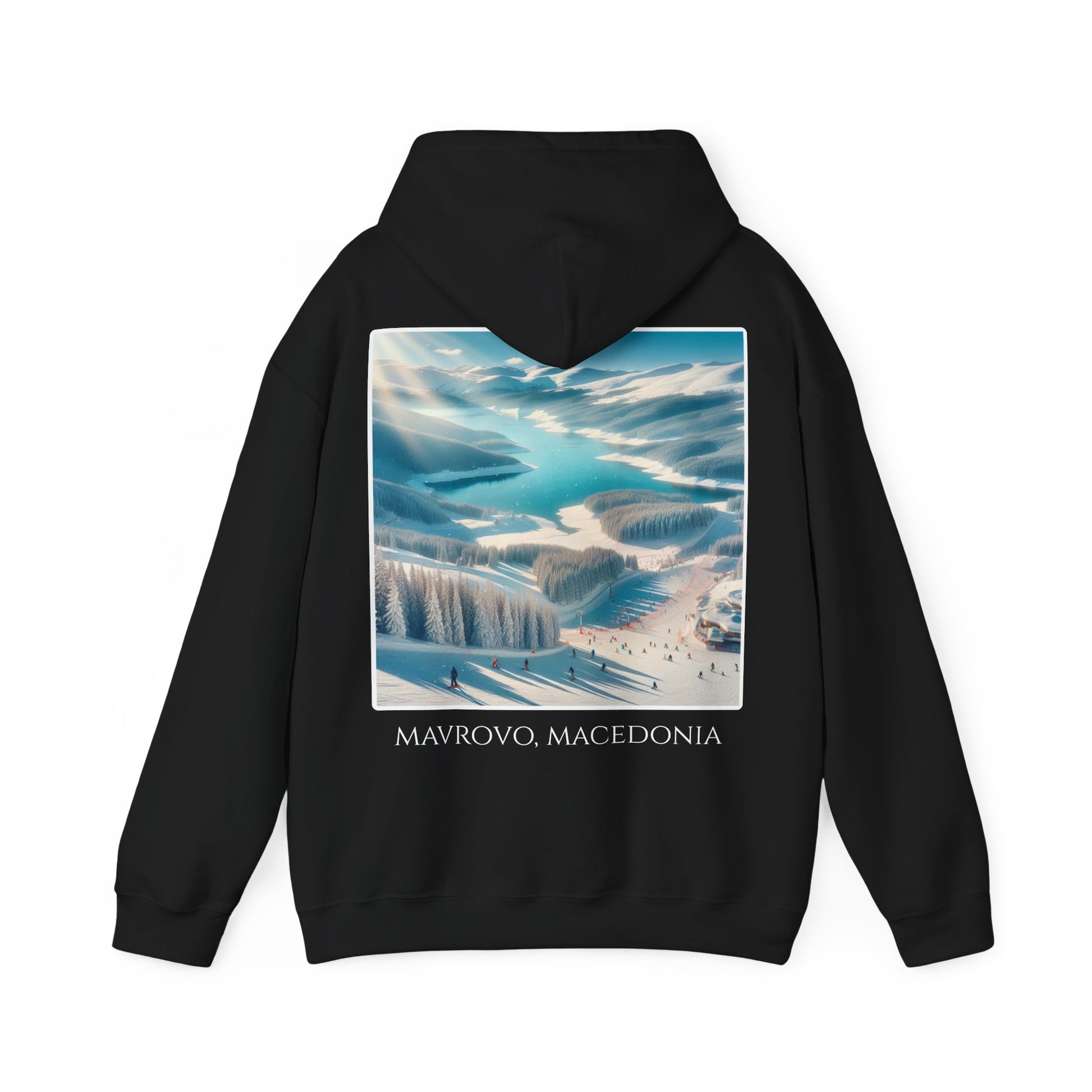 Crafted from a blend of soft and durable fabrics, this hoodie features a stunning winter illustration of Mavrovo — one of Macedonia's most beloved alpine escapes known for its pristine slopes, deep forests, and sparkling lake views.